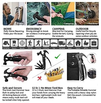 🔨12-in-1 Stainless Steel Hammer with Nylon Pouch