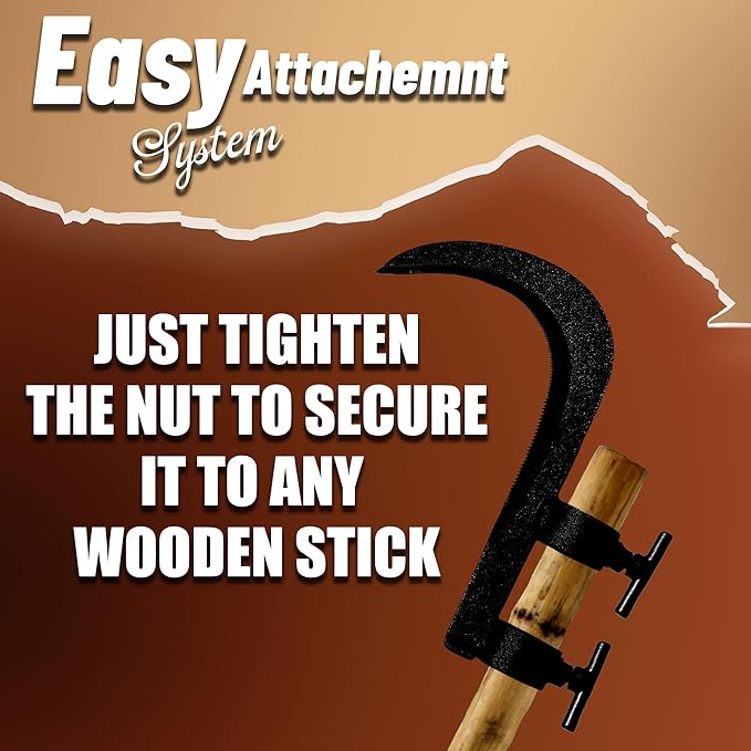 The blade is made from strong steel that stays sharp for a long time, allowing you to easily cut through grass, weeds, and small branches.